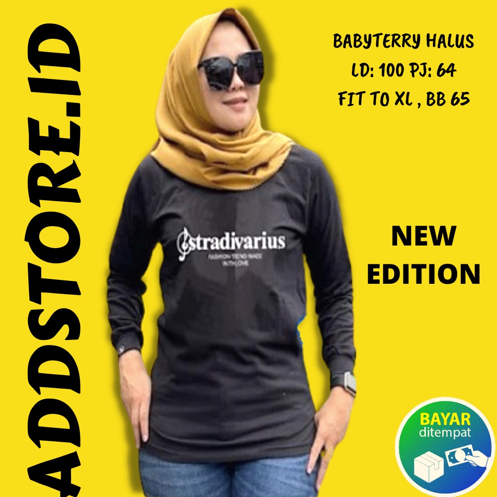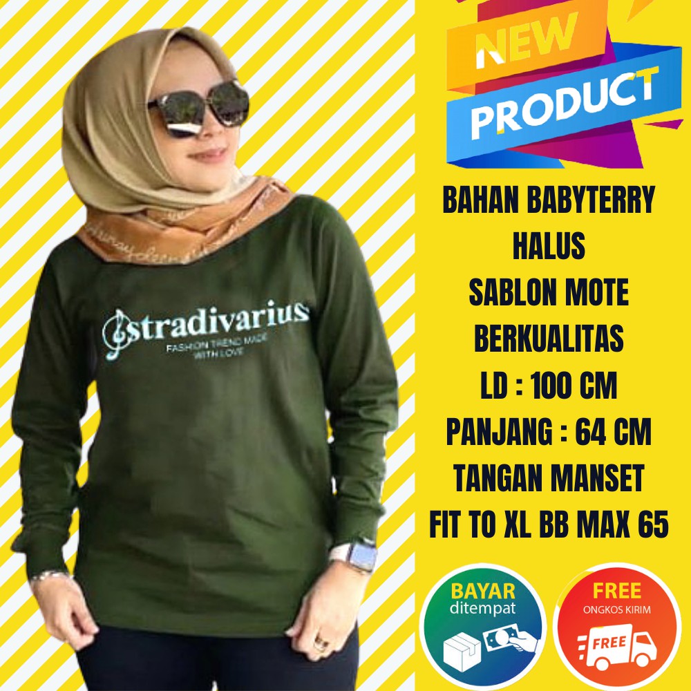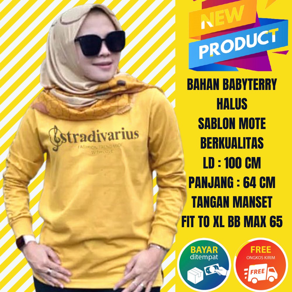 Harga BISA COD | KAOS ATASAN WANITA LENGAN PANJANG CEWEK CEWE ABG STRADIV TANGAN MANSET MOTE SABLON FIT XL