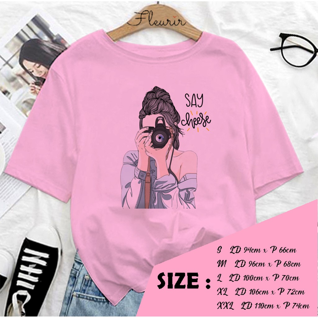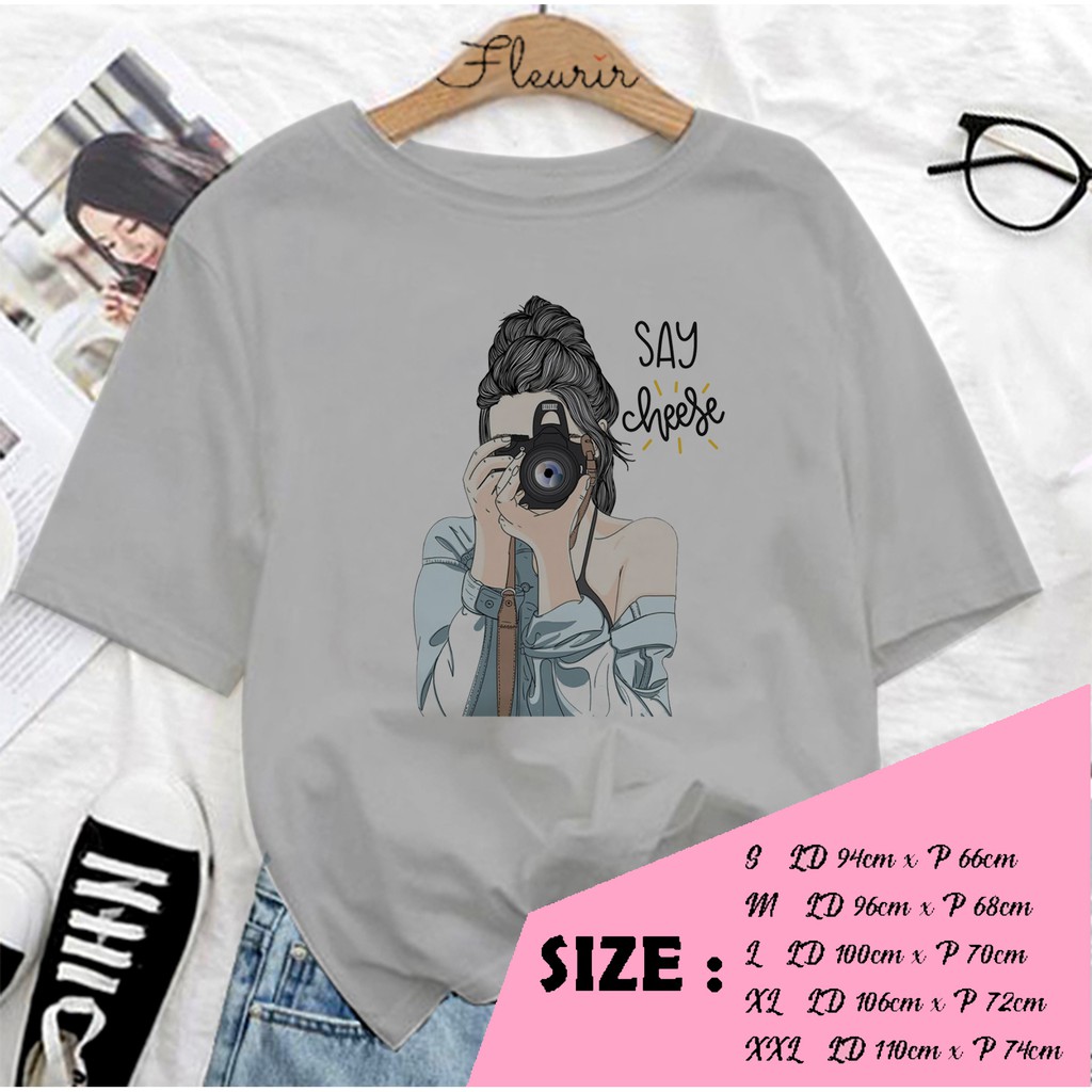 FLEURIR - KAOS WANITA DEWASA LENGAN PENDEK TEE UNISEX WANITA SAY CHEESE