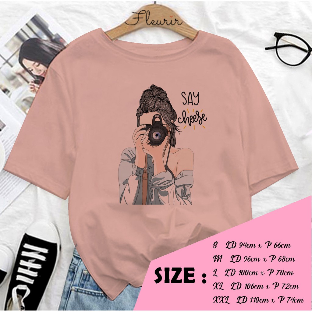 Alasan kenapa harus beli FLEURIR - KAOS WANITA DEWASA LENGAN PENDEK TEE UNISEX WANITA SAY CHEESE sekarang