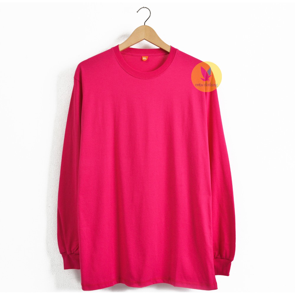 BAJU KAOS POLOS PINK FANTA / FUCHIA LENGAN PANJANG COTTON COMBED 30S