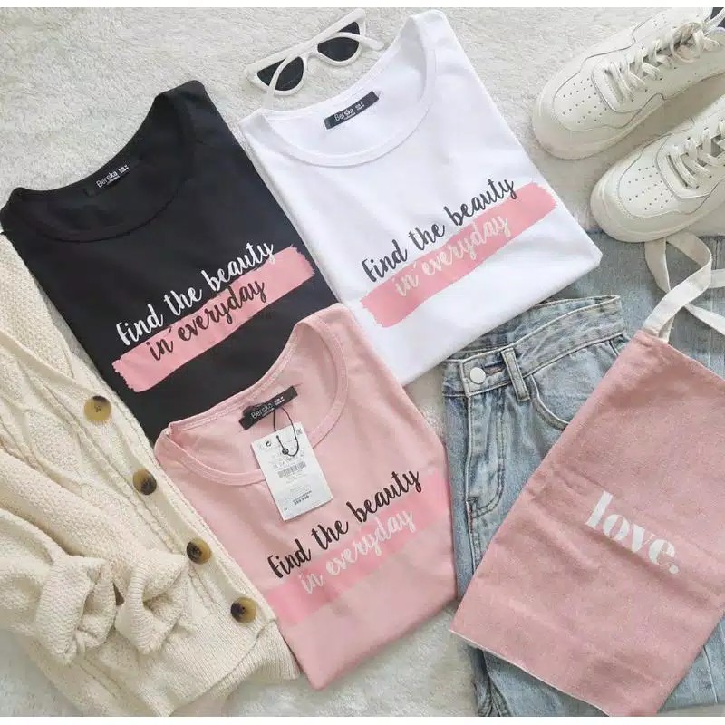Harga ModisFashion Kaos Atasan Wanita Lengan Pendek FIND THE BEAUTY IN EVERYDAY Rayon