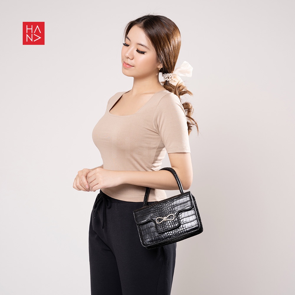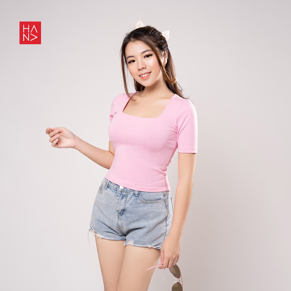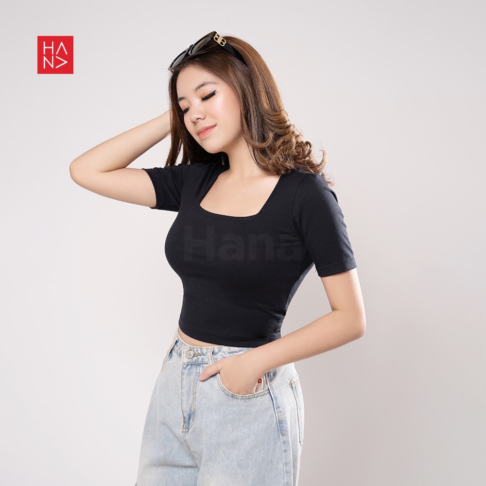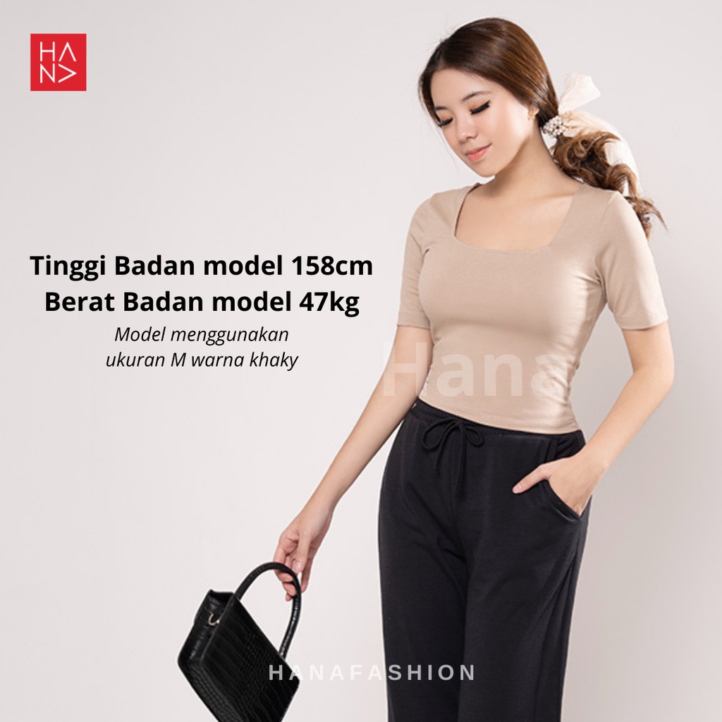 Harga [S - 3XL] HanaFashion - Martina Basic Kaos T-Shirt Crop Top Murah Wanita / Crop Top Korea - TS177