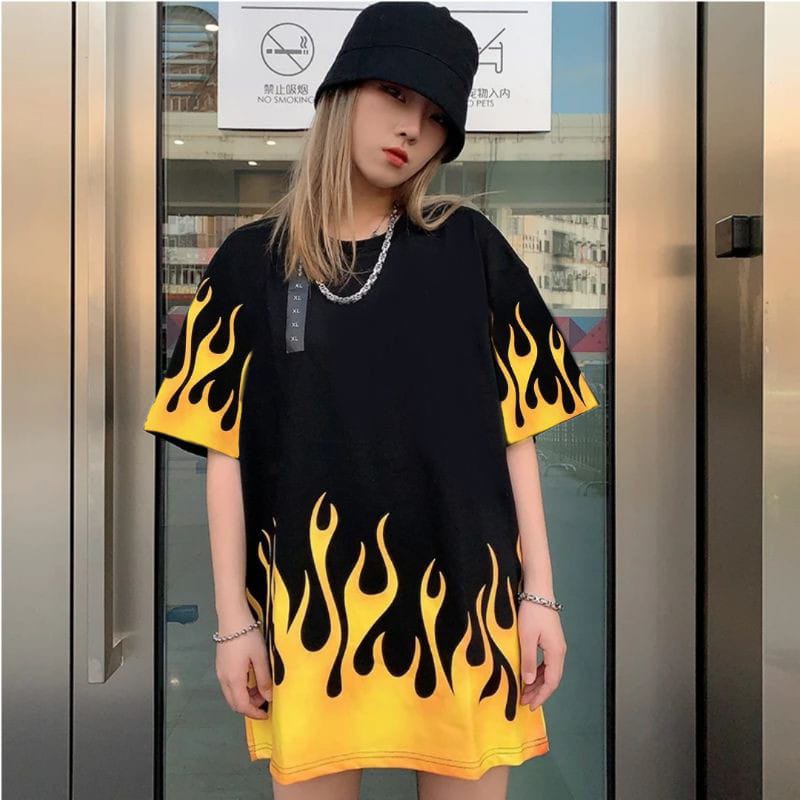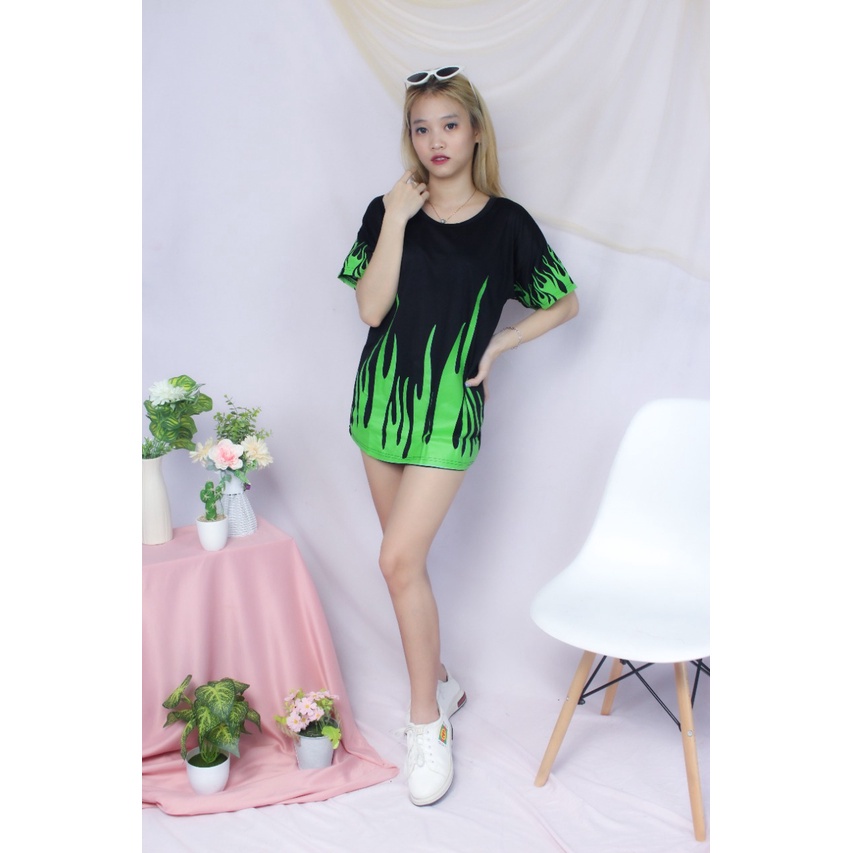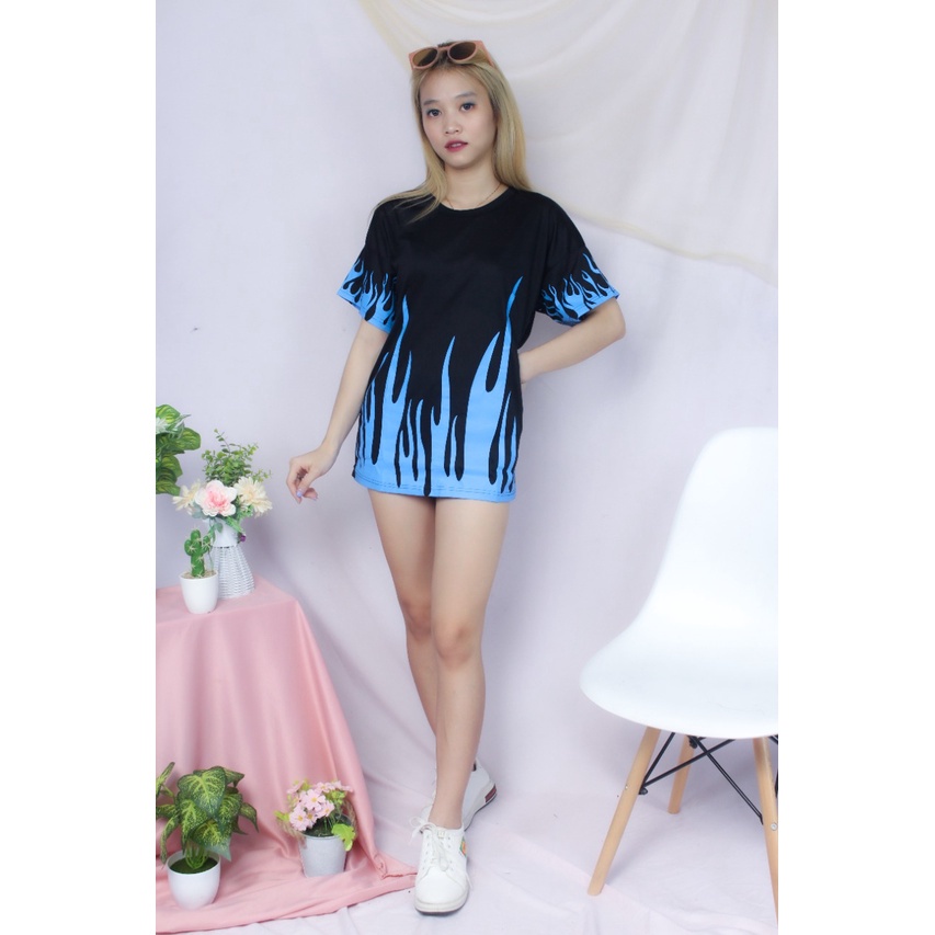 Harga TSHIRT OVER FIRE Baju Kaos Atasan Wanita Lengan Pendek Terbaru Motif Api Terbaru Kekinian ld 100 pj 70 viral
