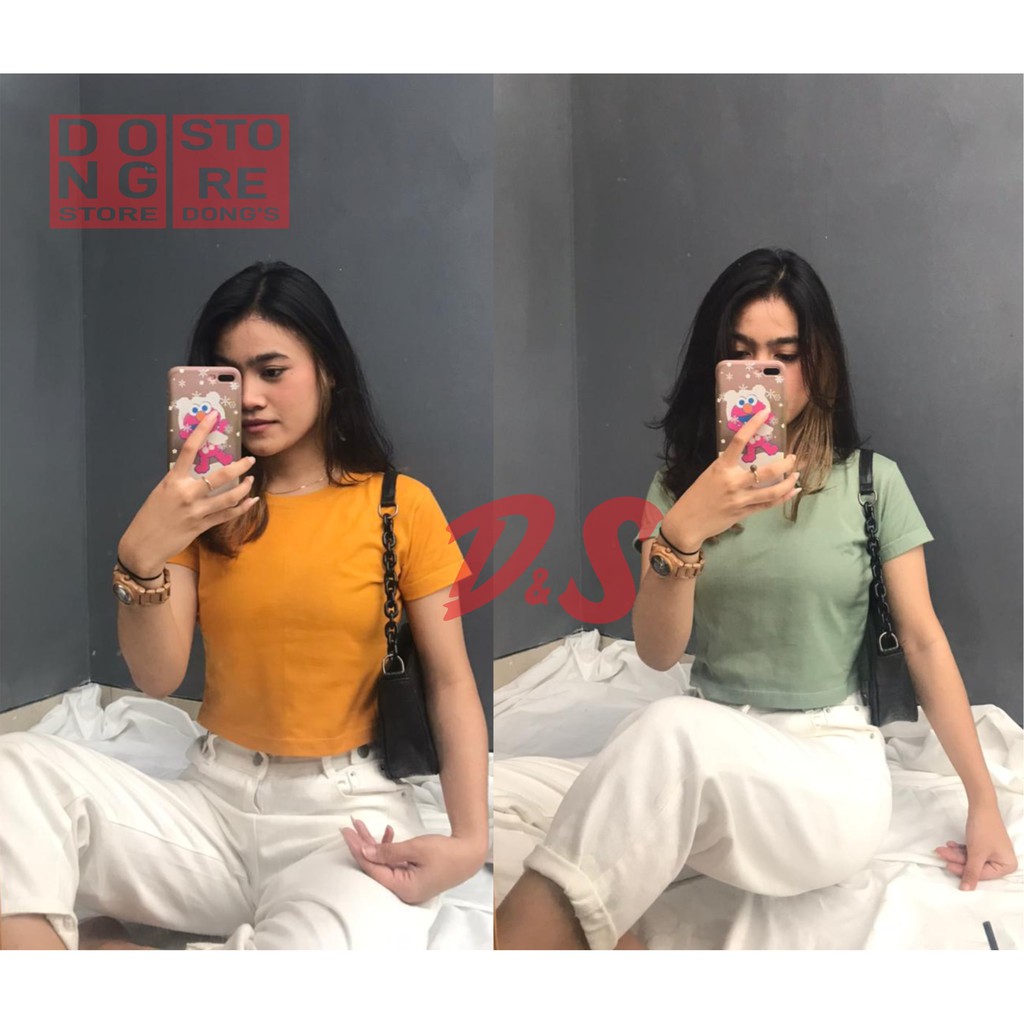 KAOS CROP TEE CROP TOP KOREA FASHION BAJU WANITA CROPTOP COTTON COMBAT 24s TIDAK NERAWANG CARANG