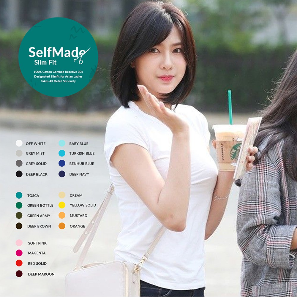 Kaos polos Wanita Slimfit 100% Ringspun cotton combed reaktif 30s