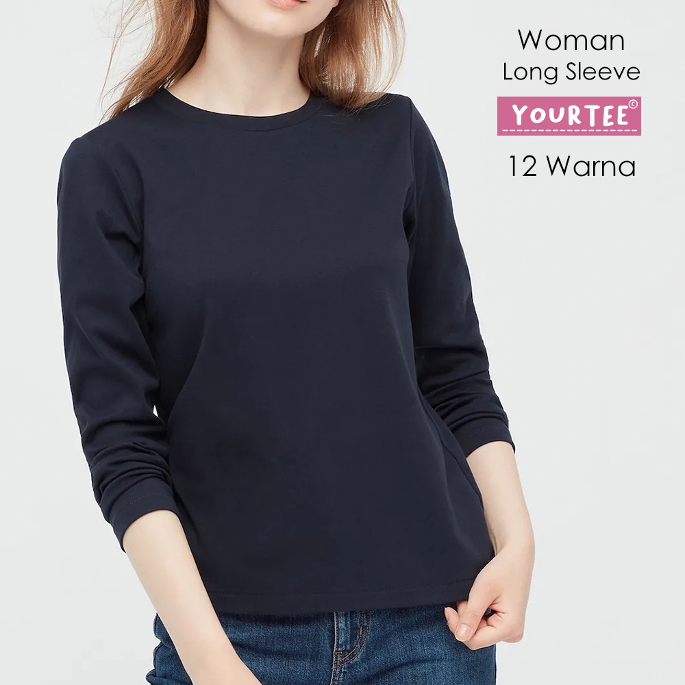 Yourtee Baju Kaos Polos Dewasa Lengan Panjang Perempuan - Katun Combed 30S