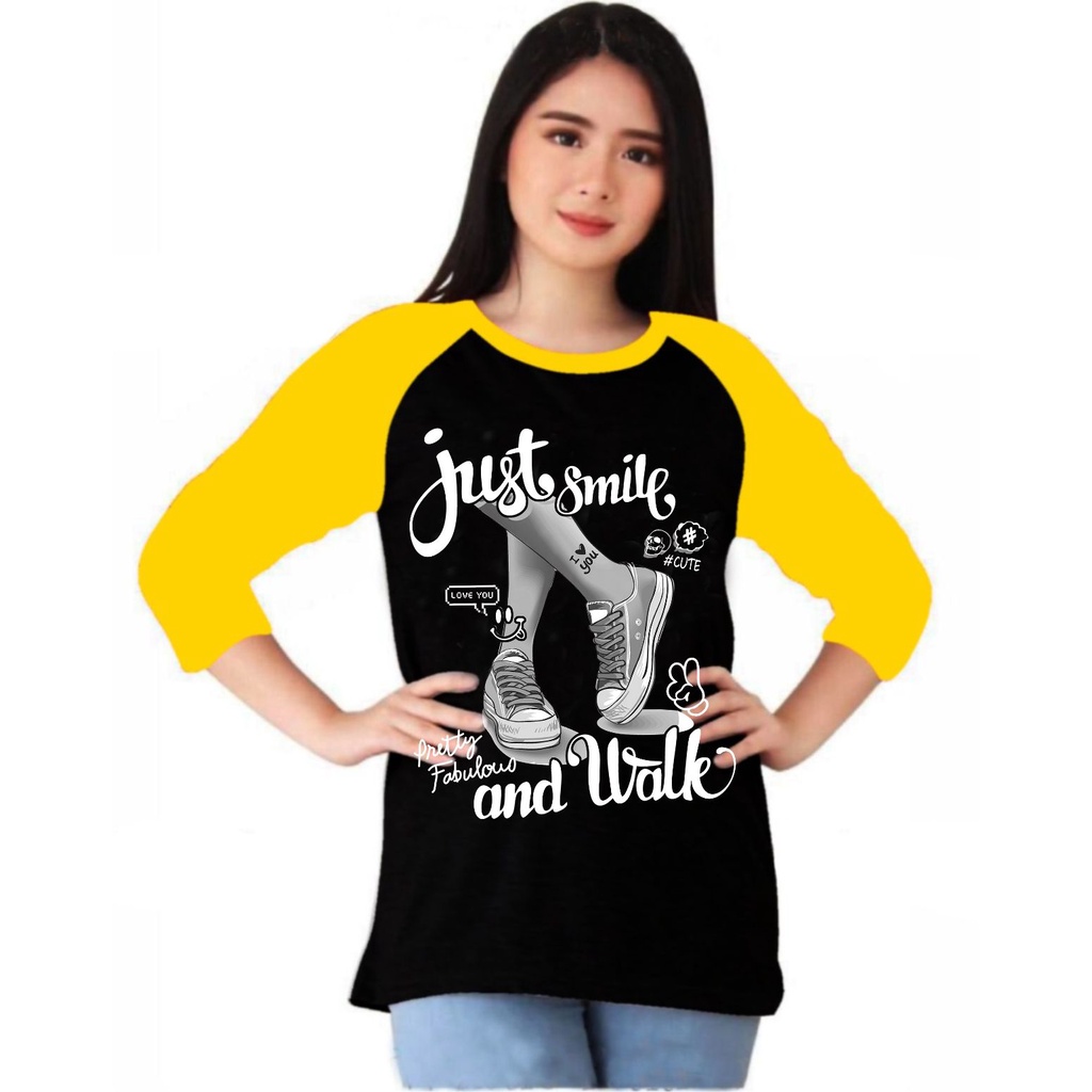 Harga Kaos Atasan Wanita Lengan 3/4 Kaos raglan Wanita sablon sepatu cewek/ Kaos Cewek/ Kaos Oblong/ Baju Kaos Tshirt/ Tshirt wanita/ Tshirt cewek
