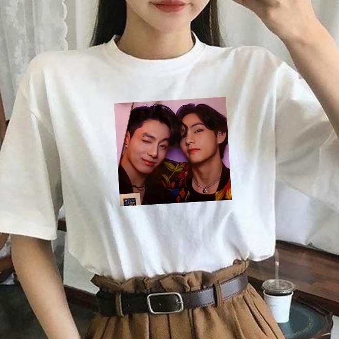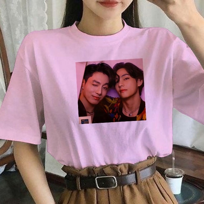 Harga Kaos BTS Taehyung Jungkook Taekook Kpop Korea Oversize Jumbo Wanita Dewasa Lengan Pendek