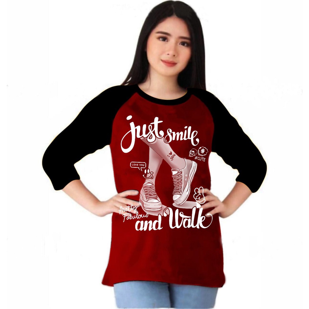 Kaos Atasan Wanita Lengan 3/4 Kaos raglan Wanita sablon sepatu cewek/ Kaos Cewek/ Kaos Oblong/ Baju Kaos Tshirt/ Tshirt wanita/ Tshirt cewek