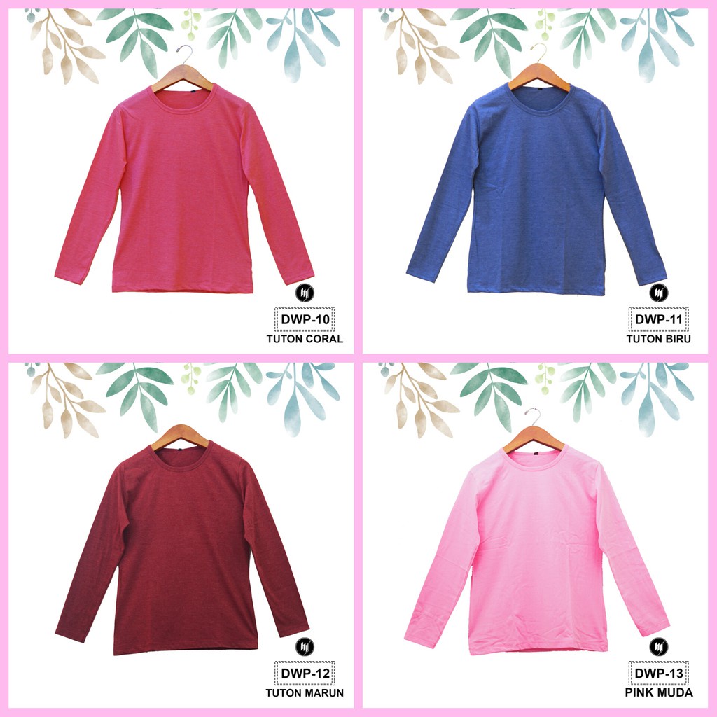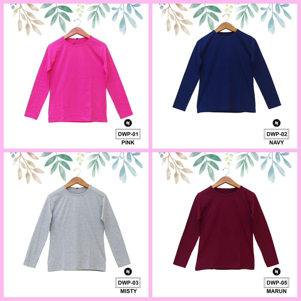 Harga Madia Kaos Polos Wanita Lengan Panjang Basic Tee Ukuran M L XL Cotton Combed 24s - DWP